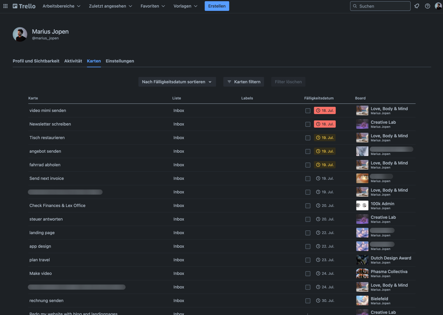 So I started to plan my week again with Trello and to assign specific tasks to specific days.