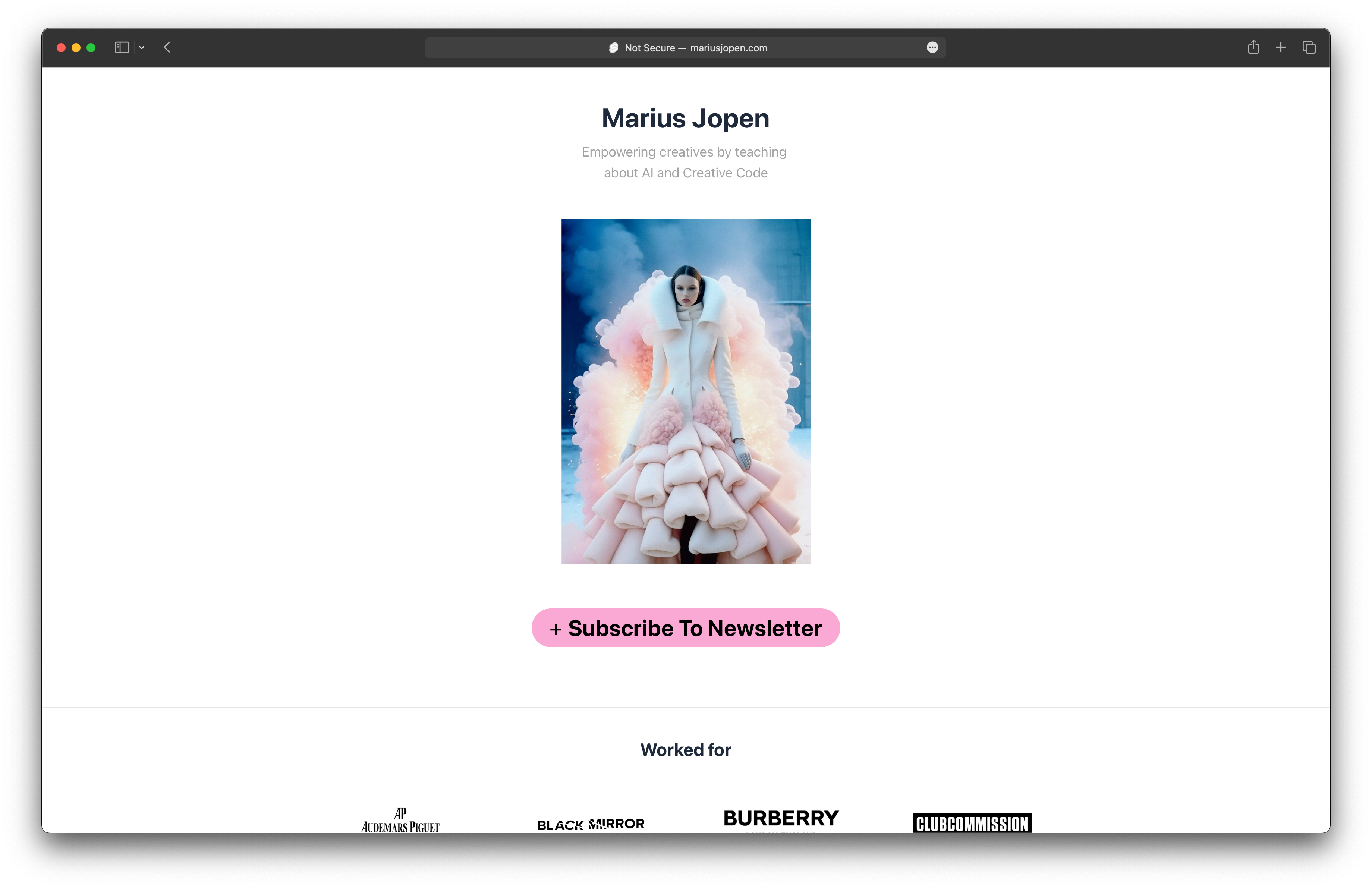 This time I tried to keep it simple. Some years ago, Stefan Sagmeister told me to only show the work for which I want to get hired for. So no old design projects and website development. Just Ai and generative coding.